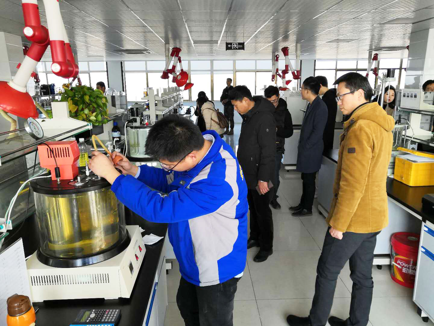 新媒體“大V”一行用心聽取金雪馳工作人員的講解,并不時提出咨詢,現(xiàn)場實際感受了金雪馳高規(guī)格的基礎油儲存規(guī)模、高標準的供應鏈管理水平、先進的生產加工工藝流程、國內領先的的研發(fā)檢測能力以及嚴格的質量管控體系,“大V”們給予了金雪馳高度的肯定。