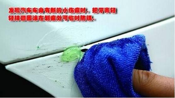 用普通的牙膏來處理。發(fā)現(xiàn)有新的小傷痕時,把牙膏輕輕抹圓圈涂在劃痕處。下雨或洗車后,別忘了再涂一下。這樣做一般可減輕劃痕印記,也可以簡單地起到隔絕作用,防止生銹,短期內沒問題。特別是白色車漆,效果最為明顯。