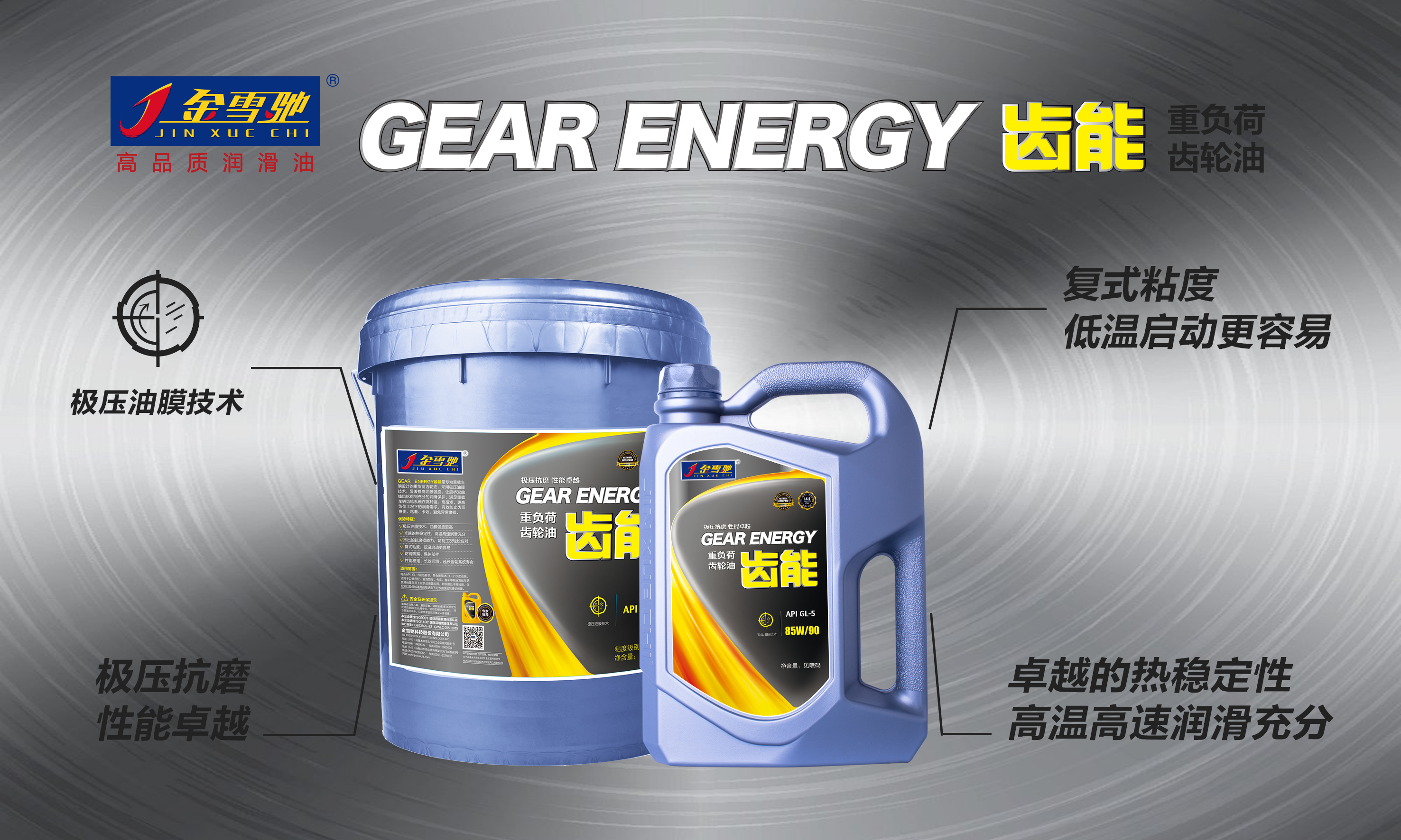 GEARENERGY齒能重負荷齒輪油GL-585W/9085W/140性能特征極壓抗磨性能卓越GEARENERGY齒能是專為重載車輛設計的重負荷齒輪油,采用極壓油膜技術,顯著提高油膜強度,讓后橋雙曲線齒輪得到充分的潤滑保護,滿足重載車輛齒...