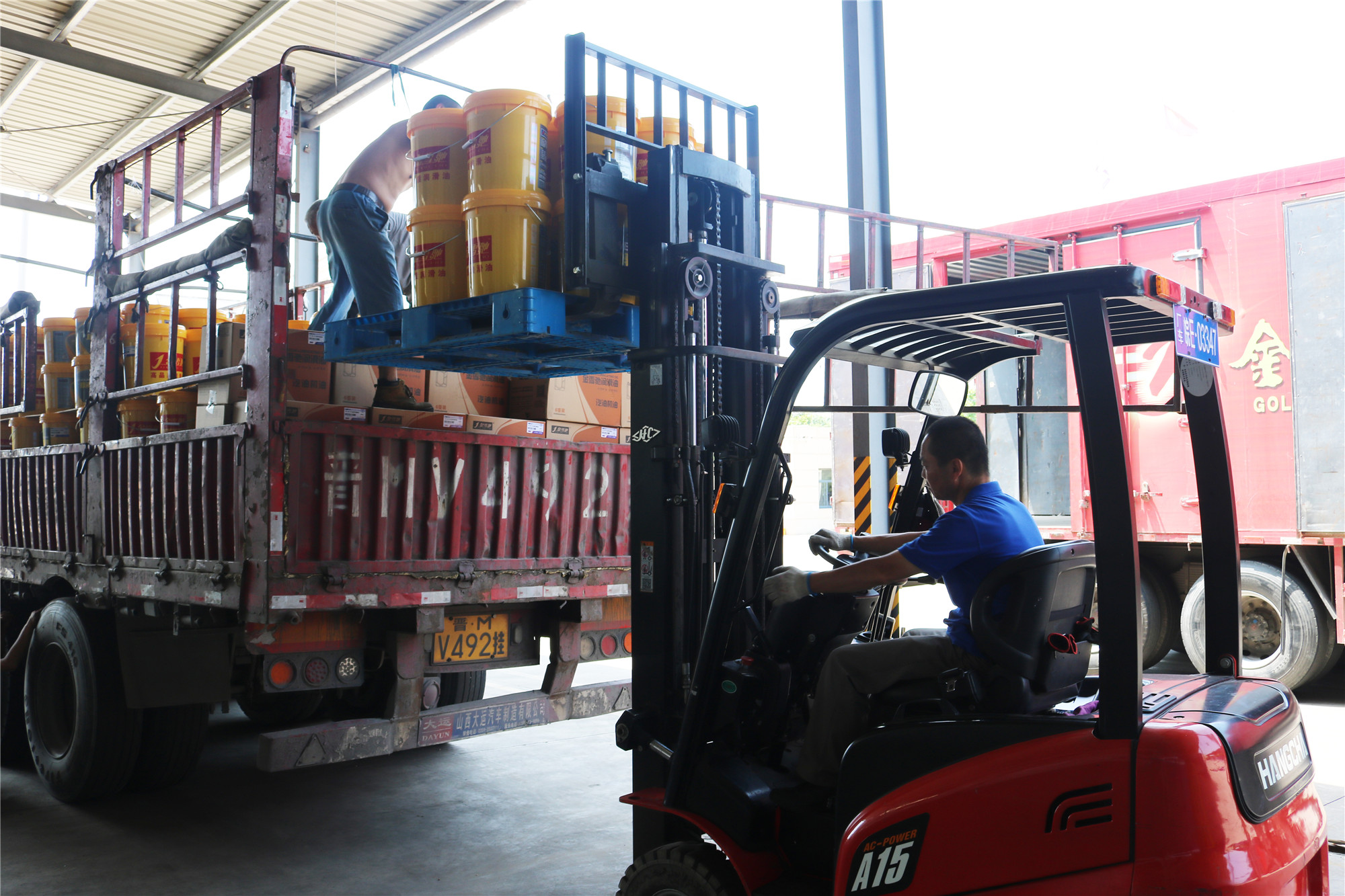 金雪馳打破了6、7月潤滑行業淡季銷售常態,創造了產銷兩旺的良好態勢。金雪馳各生產基地一派熱火朝天的景象,在生產現場,隨處可見忙碌的工人、穿行的叉車,所有產線滿負荷運轉,工人們有條不紊地進行著潤滑油的加工生產。在倉儲區,金雪馳1號、凈道、勁馳等產品整齊地碼放著,整裝待發,即將送往金雪馳全國各地客戶門店,在發貨區,裝貨車進進出出,一件件地將金雪馳產品裝入物流大卡車,發往全國各地。