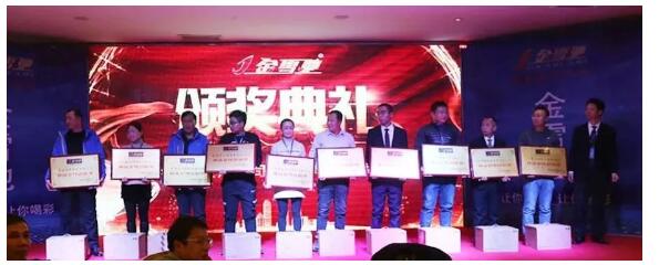 晚宴進(jìn)程中,經(jīng)銷商朋友們?cè)俅胃惺艿絹碜越鹧Y的驚喜饋贈(zèng)。在金雪馳蘭州公司發(fā)展壯大的十七年歷程中,始終有一群精誠合作的經(jīng)銷商客戶們與公司攜手相伴、不舍追隨;在2019年潑灑汗水的奮斗歷程中,金雪馳經(jīng)銷商隊(duì)伍中涌現(xiàn)出一批業(yè)績不斷走高,推廣卓有成效的優(yōu)秀經(jīng)銷商,其中更不乏用銷量數(shù)據(jù)爭搶營銷頭籌的金牌經(jīng)銷商,金雪馳蘭州公司在晚宴現(xiàn)場(chǎng)對(duì)他們予以祝賀并嘉獎(jiǎng),金雪馳也將在業(yè)精于勤、持之以恒中與他們共同進(jìn)步!