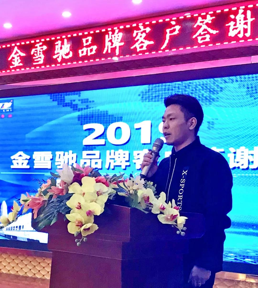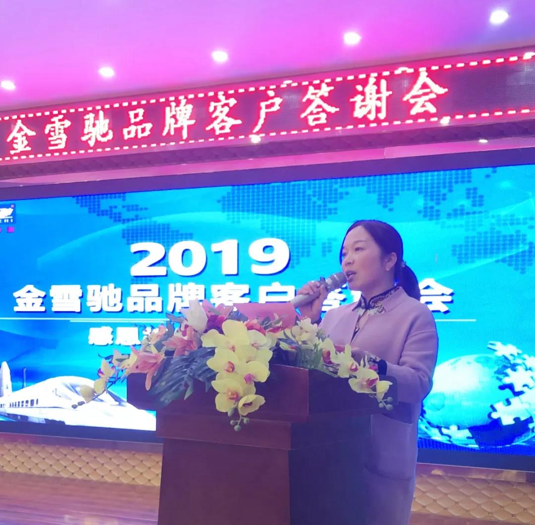 隨后,金雪馳泰州地區(qū)經(jīng)銷(xiāo)商葉雅莉女士致辭。葉總首先感謝各位嘉賓的到來(lái)。她說(shuō),正是由于大家的辛勤努力,才構(gòu)成金雪馳與客戶之間和諧相處、共贏發(fā)展的良好局面。金雪馳正以穩(wěn)健的步伐逐漸發(fā)展壯大,我們與金雪馳的合作前景會(huì)更加美好,未來(lái)我們應(yīng)充滿激情,鼓足干勁,力爭(zhēng)上游,共迎輝煌。