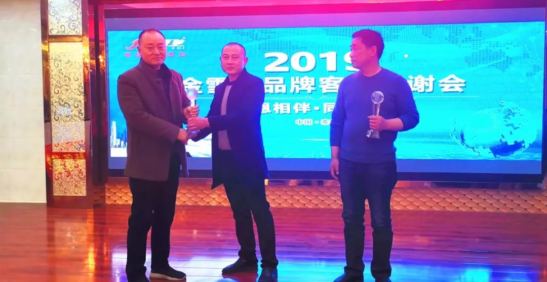 會(huì)議到達(dá)高潮部分。為感謝大家一年以來(lái)的付出與努力,金雪馳為嘉賓們頒發(fā)精英合作獎(jiǎng)、金牌合作獎(jiǎng)的獎(jiǎng)杯和獎(jiǎng)品。