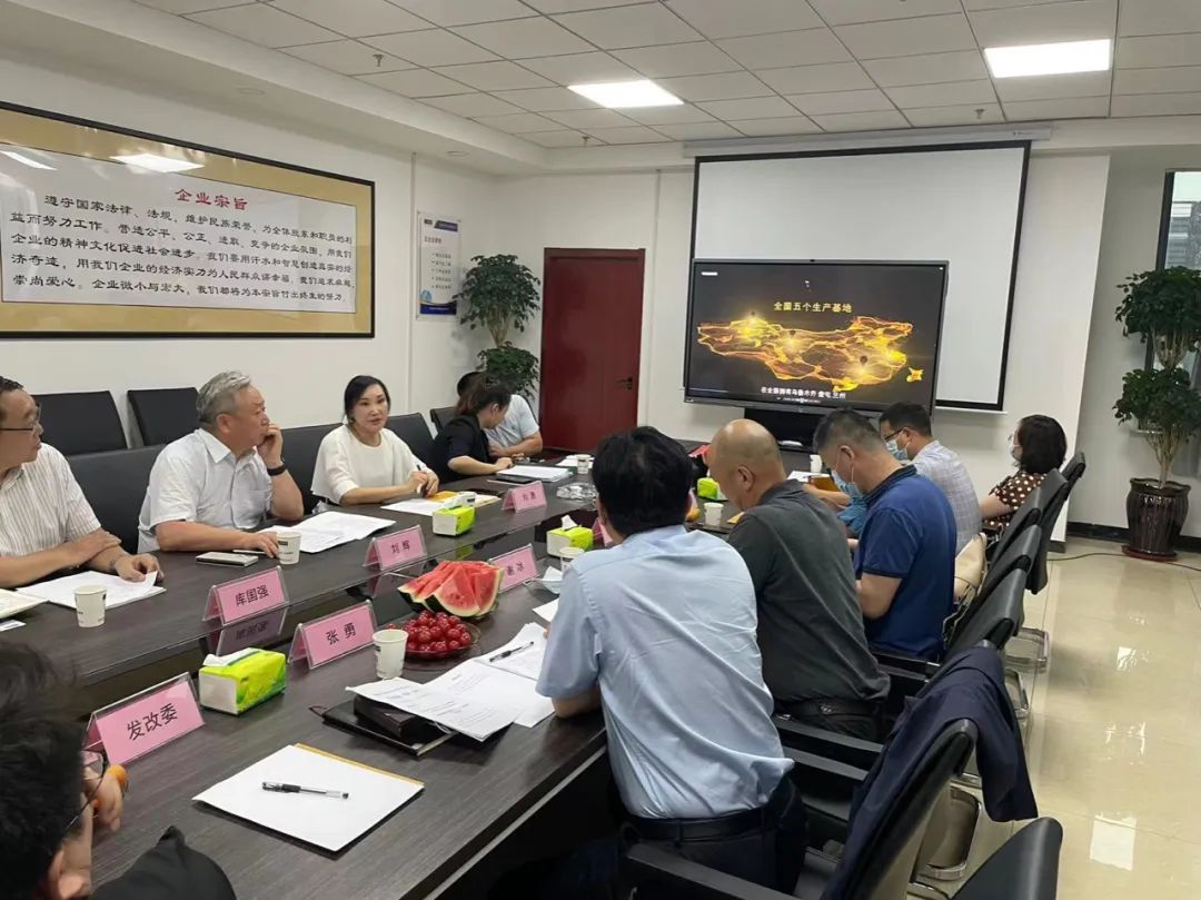 新疆隆成集團副總經理劉惠、金雪馳科技股份公司副總經理庫國強、集團戰略投資部成明部長、科技項目部馬曉榮副部長參加了調研會議。