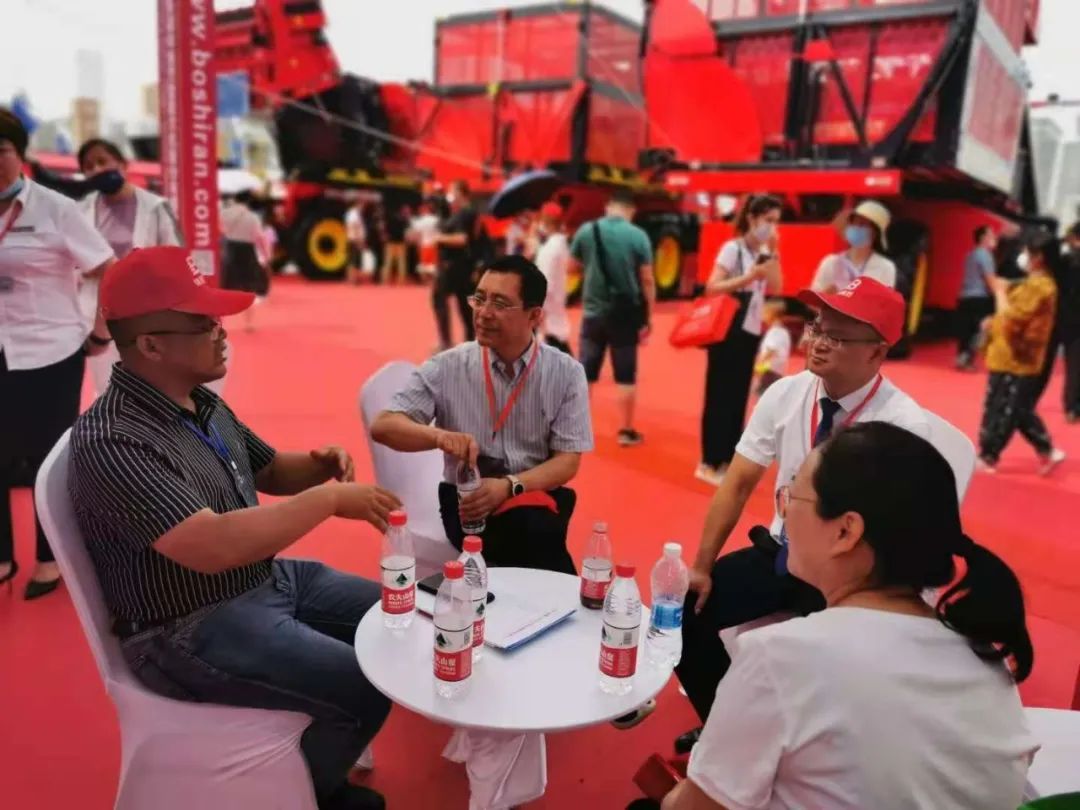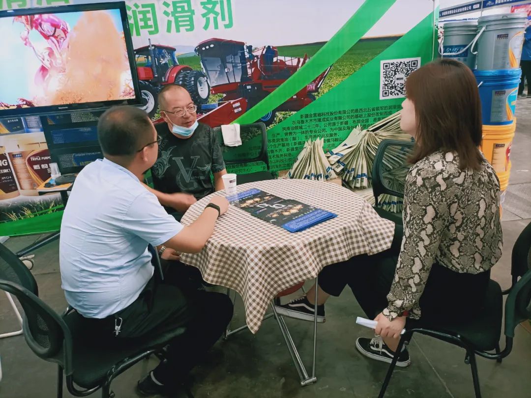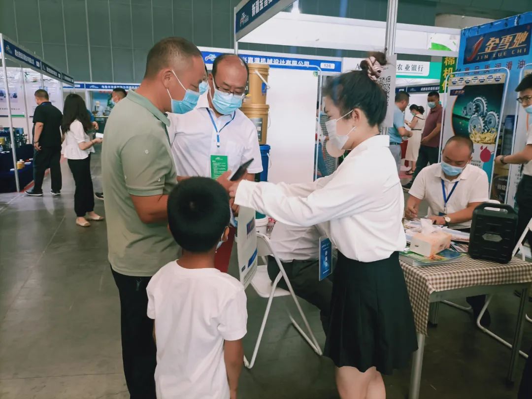 金雪馳采棉機專用清洗液、摘錠脂,勁馳、王牌系列等高端農機產品引得眾多農機配件廠家與國內外客商蒞臨金雪馳展位咨詢、洽談合作。金雪馳股份公司總經理宋廣輝、烏市公司總經理張紀成攜金雪馳專業銷售、技術人員向咨詢客商們介紹了金雪馳產品及技術服務,與客商們進行了廣泛深入的交流。