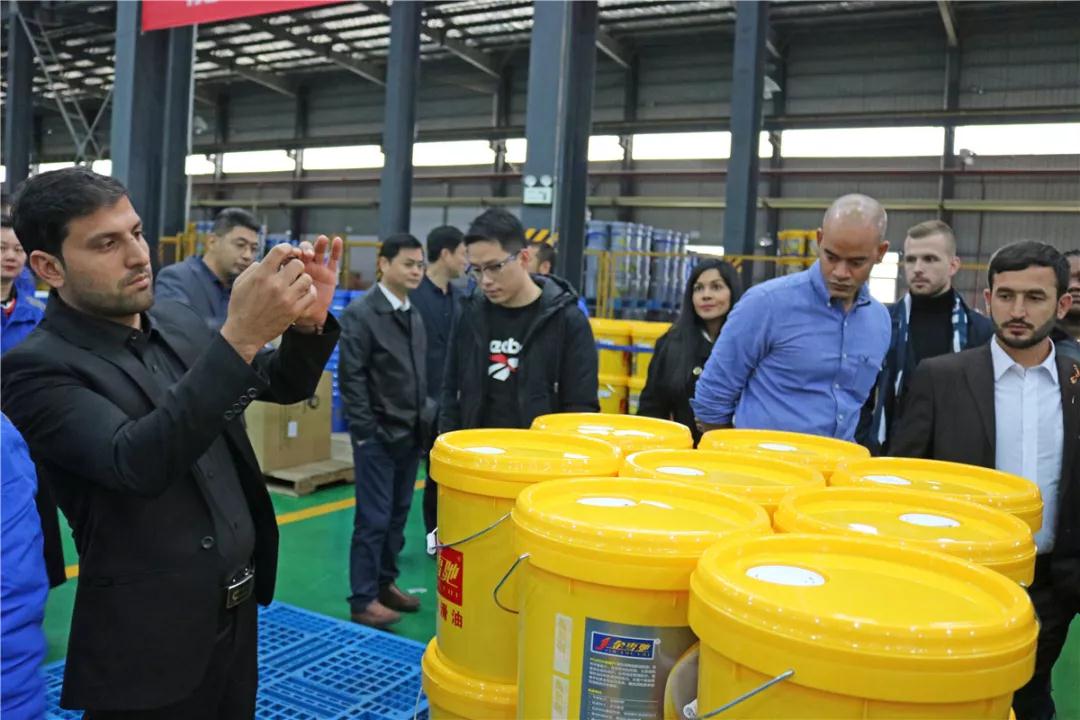 考察團(tuán)一行在田總的陪同下,參觀了金雪馳年產(chǎn)能15萬(wàn)噸高端潤(rùn)滑油生產(chǎn)車(chē)間。從產(chǎn)品的原料管控、調(diào)和、灌裝到產(chǎn)品檢測(cè)、貼標(biāo)、包裝、裝箱,考察團(tuán)成員們看到了一桶桶金雪馳潤(rùn)滑油誕生的全過(guò)程,生產(chǎn)車(chē)間處處體現(xiàn)了科技、智能和節(jié)能。