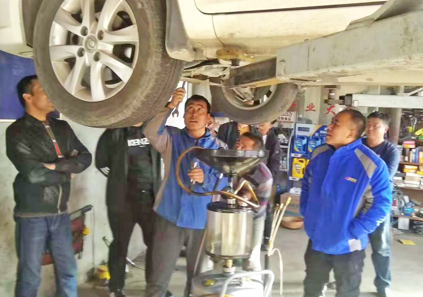 在活動現場,金雪馳工作人員對金雪馳潤滑油進行了細致講解,不僅為用戶們展示了全合成汽油機油金1號、渦輪增壓專用T族系列,抗油泥凈道系列等暢銷產品,同時介紹了今年上市的T族特級S、發動機清洗劑等全新產品。金雪馳蘭州分公司銷售總監趙偉鵬更是為用戶們現場演示了金雪馳自動等量變速箱油換油機,省工省時的金雪馳動態智能換油機引得現場用戶的連連稱贊。