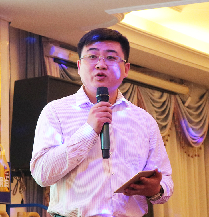 本次會議由金雪馳潤滑油上海地區經銷商——上海市皸妘商貿有限公司董事長祝軍偉致開幕詞,他首先向全體到場金雪馳家人表示真摯的感謝,并對金雪馳長期以來的對上海市場的支持表示感謝。他說,新疆金雪馳科技股份有限公司是專注高品質潤滑油二十年的民營潤滑油十強企業,其優異產品品質和強大的公司實力是毋庸置疑的,自雙方合作以來,金雪馳以雙贏的經營理念,大力扶持上海終端市場,皸妘今天的成就離不開金雪馳。他表示,皸妘愿與金雪馳攜手并肩共同為廣大合作伙伴提供完善的售前、售中、售后服務,與合作伙伴一起共創美好未來。