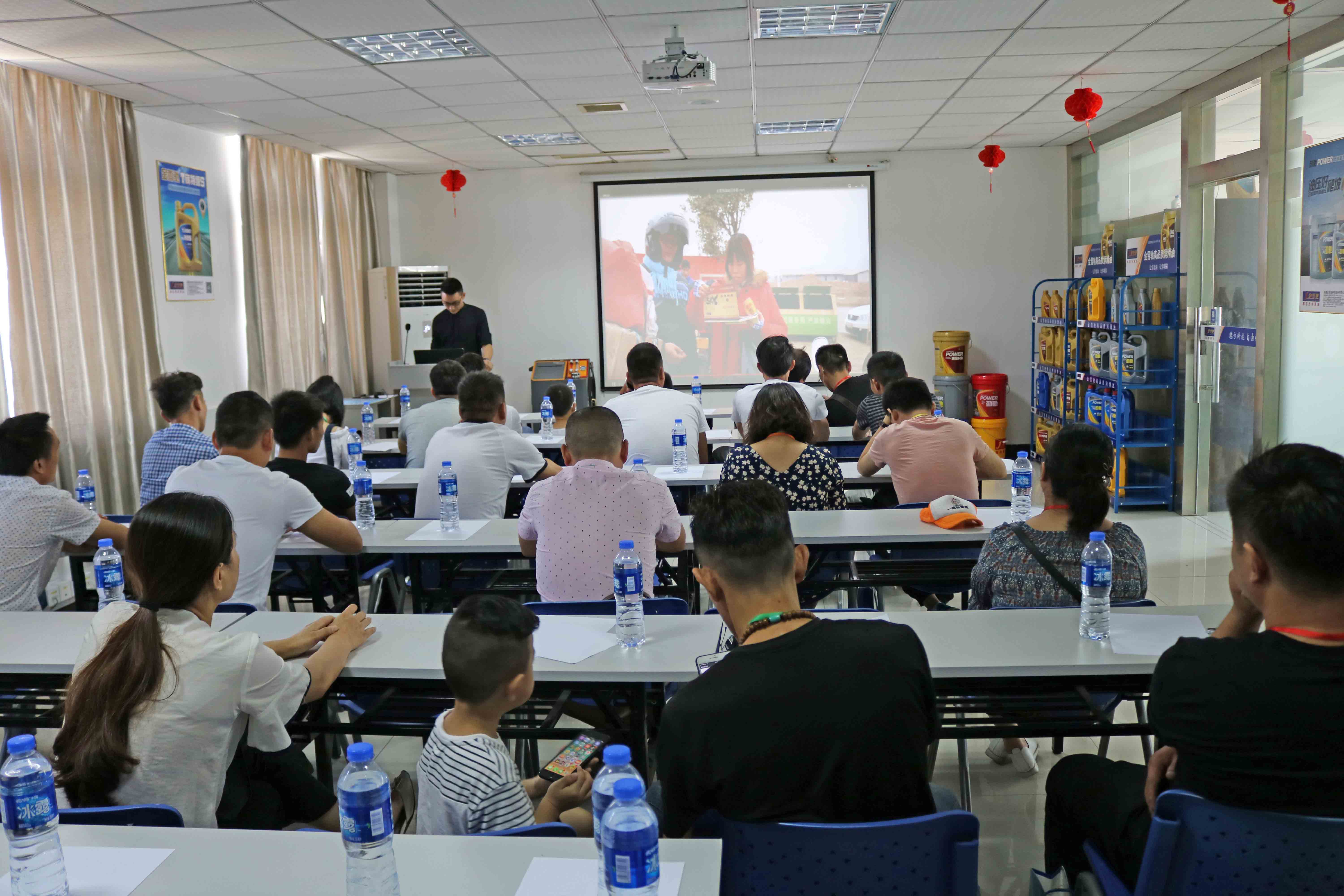 馬鞍山公司華中大區(qū)總監(jiān)丁鵬為客戶們作新產(chǎn)品項目推廣培訓。丁總監(jiān)為現(xiàn)場客戶講解了金雪馳T族特級S、金雪馳變速箱油等新產(chǎn)品的賣點和項目推廣方案并對客戶提出的專業(yè)知識疑問詳細講解,專業(yè)、生動的講解受到客戶的熱烈歡迎。