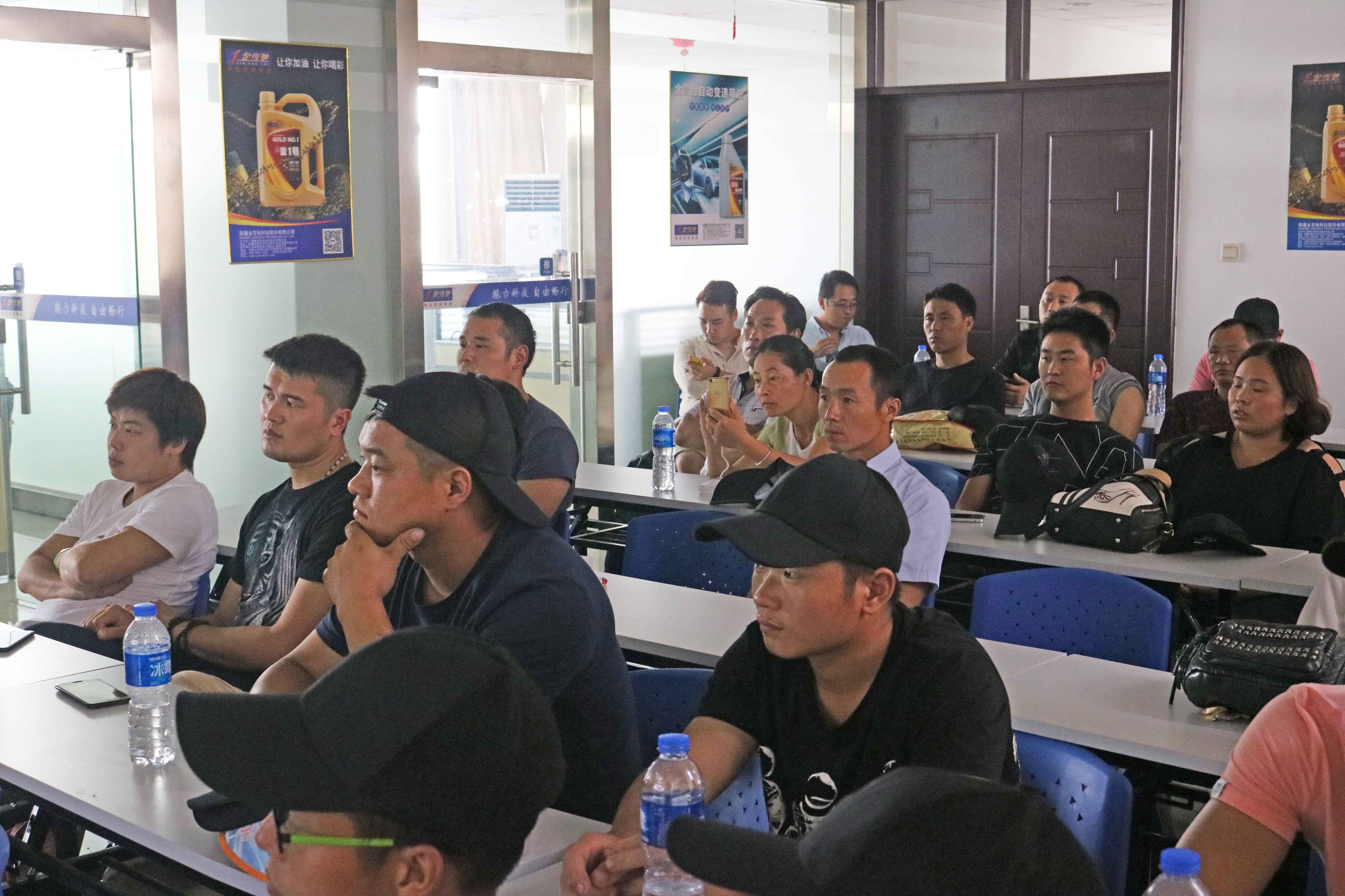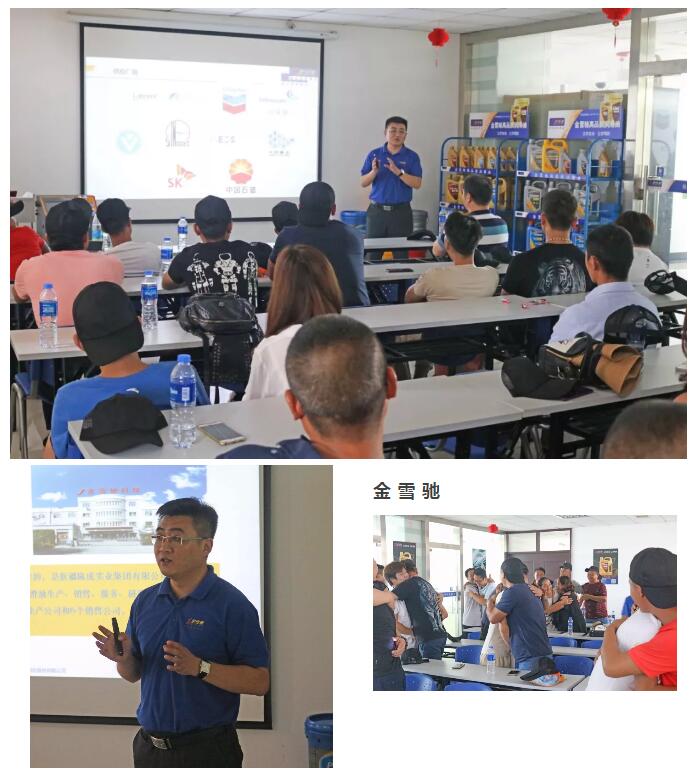 ▲金雪馳科技(馬鞍山)有限公司銷售總監杜海澤主持了歡迎儀式,他熱烈歡迎大家的到來并為到場的客戶講述了公司的基本情況和未來幾年的發展戰略。在與客戶熱烈的游戲互動后,他為客戶們講解了金雪馳T族特級S、金雪馳變速箱油等新產品的賣點和項目推廣方案并對客戶提出的專業知識疑問詳細講解,專業、生動的講解得到了現場客戶的強烈反響,受到客戶的熱烈歡迎。