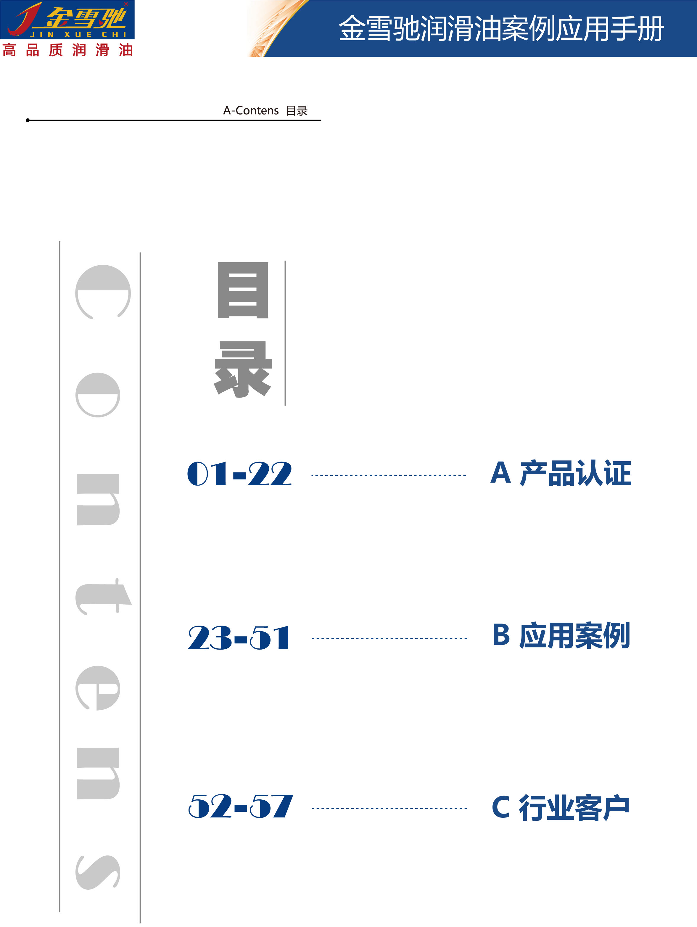 金雪馳潤滑油應(yīng)用案例手冊里列舉的只是金雪馳眾多榮譽(yù)、客戶、案例的一部分,隨著金雪馳品牌知名度的提升和影響力的擴(kuò)大,金雪馳將會(huì)有更多的榮譽(yù)和案例展示給大家,敬請期待。