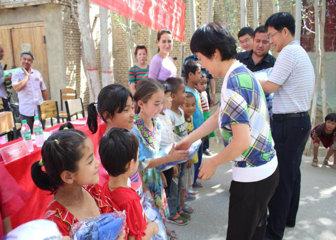 作為新疆本土企業,新疆金雪馳科技股份有限公司也時刻心系南疆貧困地區及民族同胞的發展。近兩年,金雪馳愛心基金持續在南疆貧困地區開展捐助活動,累計捐助愛心基金40余萬元。幫助和田墨玉縣修筑道路;為南疆貧困村子的學校購買電腦、打印機、課桌、椅子等設備;為墨玉縣中心小學的優秀學子組織“烏魯木齊科技夏令營”等活動;這次校服捐贈活動也是新疆金雪馳科技股份有限公司踐行黨中央和自治區黨委、政府的號召,按照自治區黨委、政府,自治區工商聯“千企幫千村·精準扶貧”的要求,全力開展的又一次幫扶活動,用自己的實際行動迎接十九大的勝利召開!