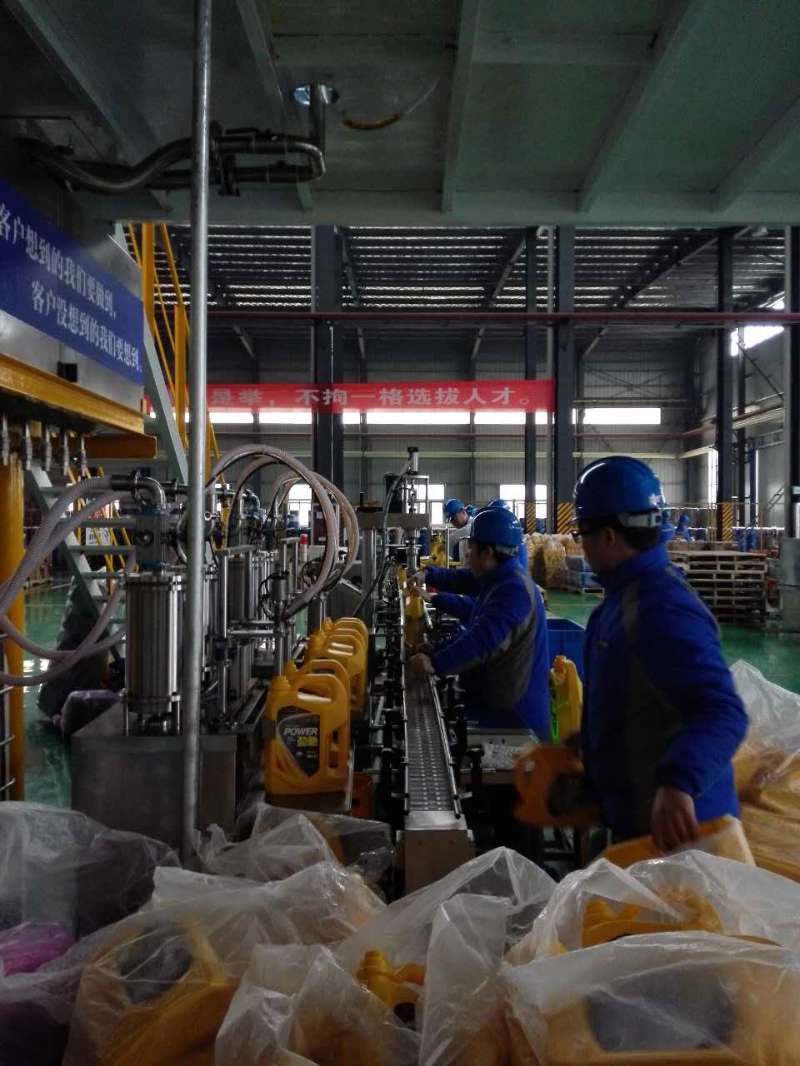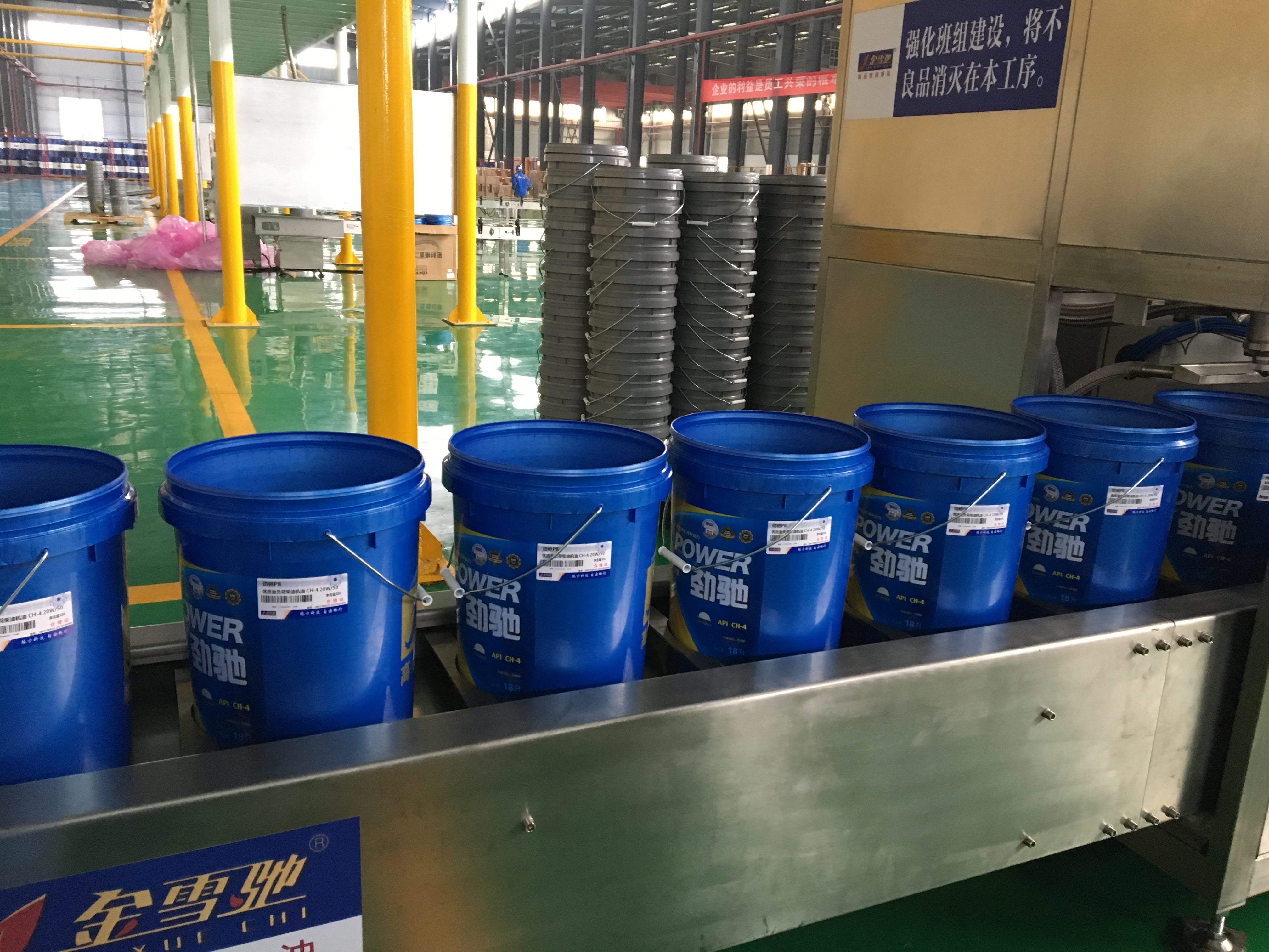 在金雪馳馬鞍山工廠潤滑油生產(chǎn)車間,調(diào)和區(qū)、罐裝區(qū)都在有條不紊的進(jìn)行著工作,生產(chǎn)流水線上隨處可見忙碌的工人、擺滿的潤滑油生產(chǎn)桶和標(biāo)貼……繁忙而有序的開展著每一道程序。