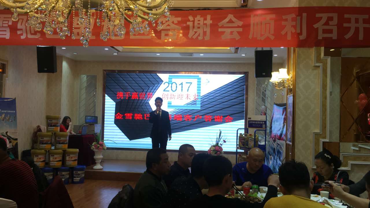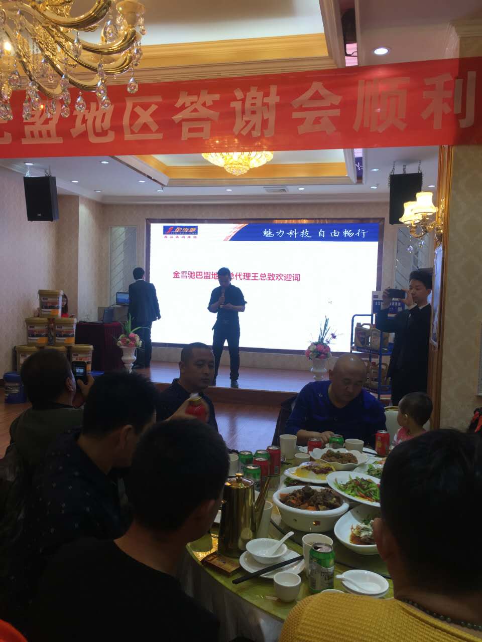 歡迎曲之后,巴盟地區的總代理王祥總經理為答謝會致辭,感謝客戶的到來,并對感謝客戶對金雪馳的支持。