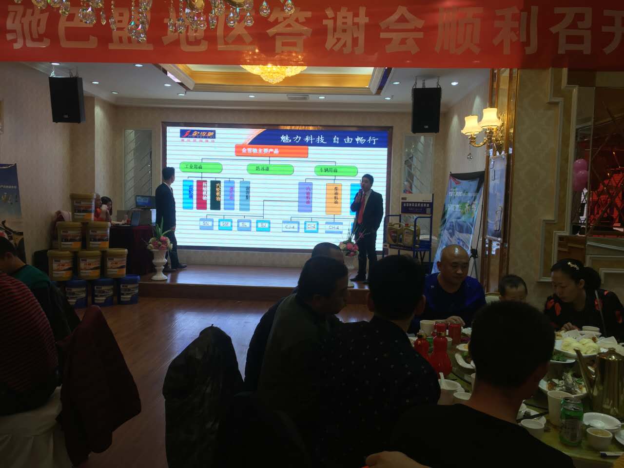 之后金雪馳蘭州公司趙副總為到場的新客戶朋友們詳細的介紹了金雪馳潤滑油品牌歷史、研發實力、質量保障、銷售理念、售后服務,讓客戶加深了對金雪馳的認知度、忠誠度、信任度。
