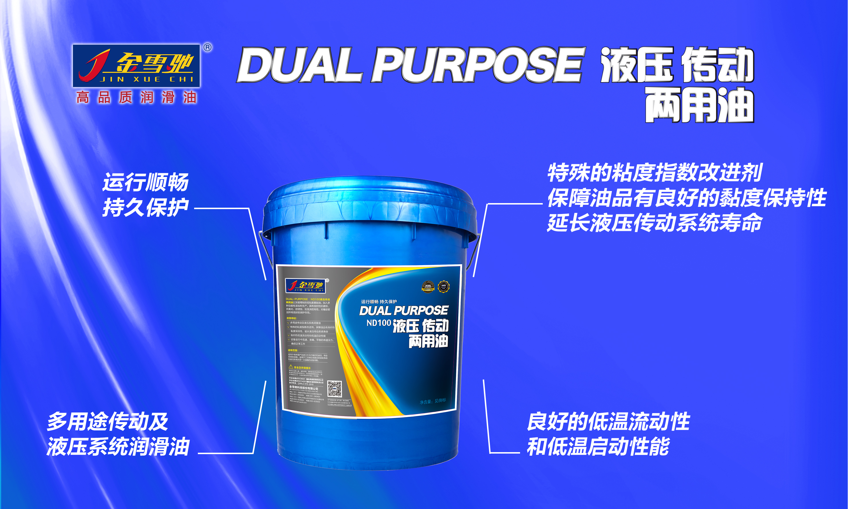 DUAL-PURPOSE ND100液壓傳動兩用油以深度精制的低粘度基礎油,加入多種功能性添加劑生產,具有良好的抗磨損、抗氧化、防銹蝕、抗泡沫的特性,對橡膠密封件有良好的保護作用。