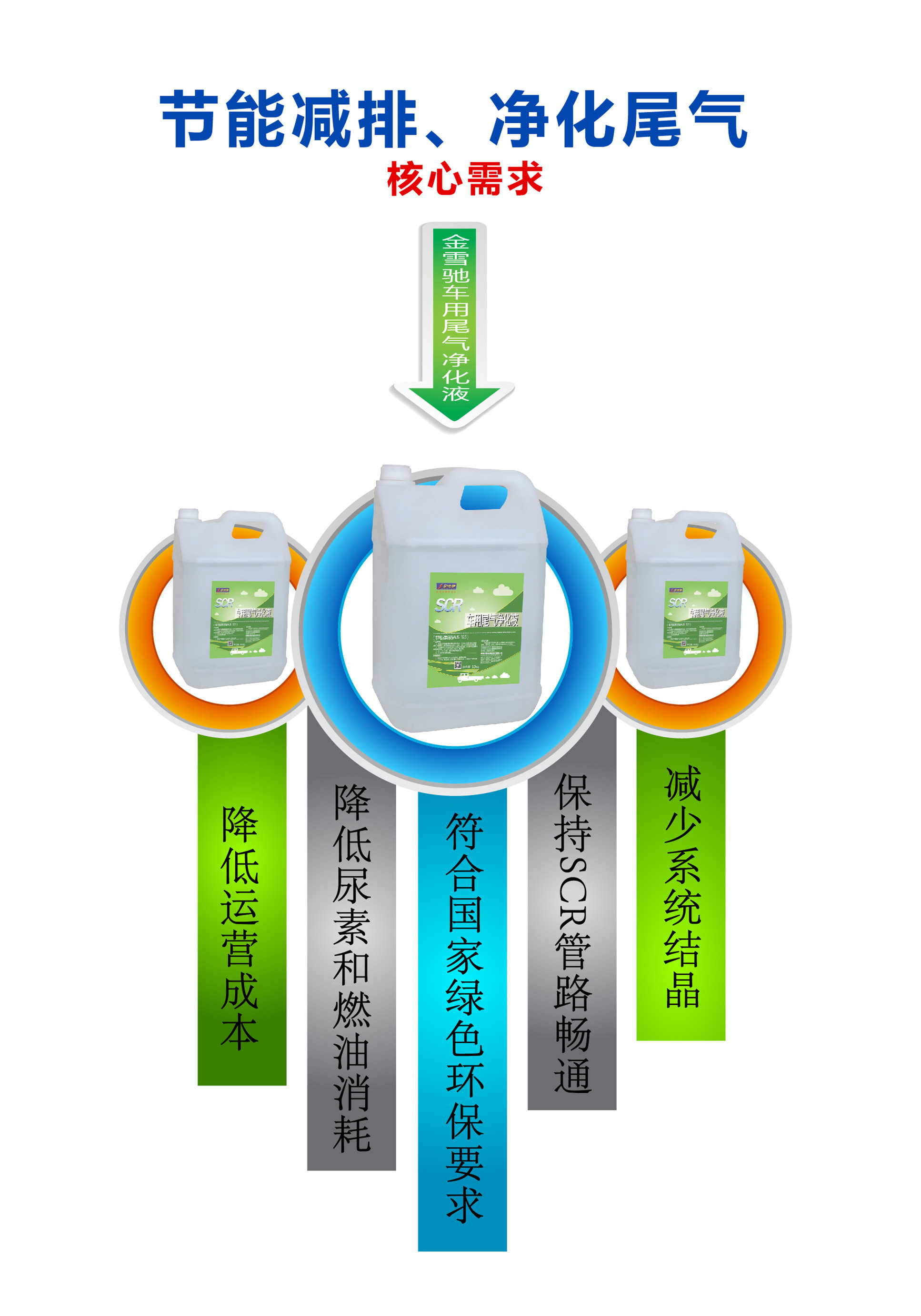 金雪馳車用尾氣凈化液是專用于裝載SCR系統的柴油車輛的還原劑,通過與NOx產生選擇性催化還原反應,將其轉換為氮氣和水,從而大大降低廢氣和PM2.5污染顆粒的排放量。作為尾氣排放系統中的翹楚,金雪馳車用尾氣凈化液將助力國內PM2.5高效治理,傾力打造碧水藍天。