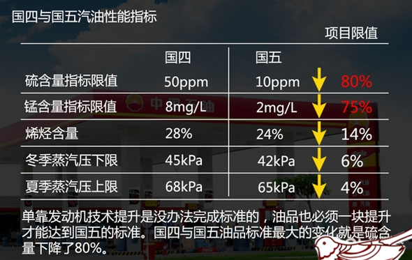 對于柴油車,氮氧化物(NOX)排放限制嚴格了28%,碳氫化合物和氮氧化物(HC NOX)總和指標嚴格了23%,而對于柴油車的顆粒物濃度(PM)限制提升了82%!還有新增的顆粒物粒子數量(PN)也是沖著柴油車來的,PN標準只對柴油車檢測。相比于汽油車,國五排放標準顯然對柴油車要求更高。因為一輛柴油車在跑相當于N輛汽油車在跑。而且必須承認的是,國內的柴油車排放確實存在相當大的問題,但這是兩方面引起的,一是車廠造假或采用曲線技術取得環保標準,第二個就當然是那個油的問題了。所以環保部在國五里對柴油車排放標準大幅提高是有原因的。此外,單靠發動機技術提升是沒辦法完成標準的,油品也必須一塊提升才能達到國五標準。國四與國五油品標準******的變化就是硫含量下降了80%。
