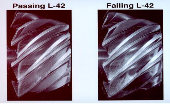 • 評估:①齒面拋光、磨損、疲勞損傷(點蝕、剝落、波紋、螺脊)和擦傷②氧化安定性、腐蝕、銹蝕和零件變色